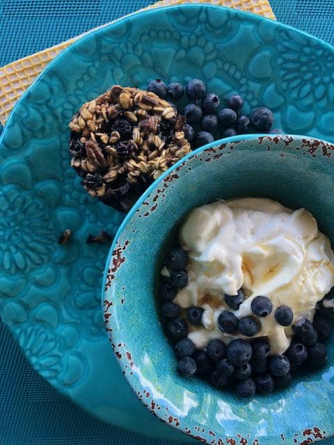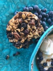 This recipe for Blueberry Pecan Baked Oatmeal Cups is perfect for breakfasts on-the-go, as well as for a satisfying snack. Serve with a side of Greek yogurt, a drizzle of maple syrup and blueberries for a balanced and satisfying midlife breakfast!
