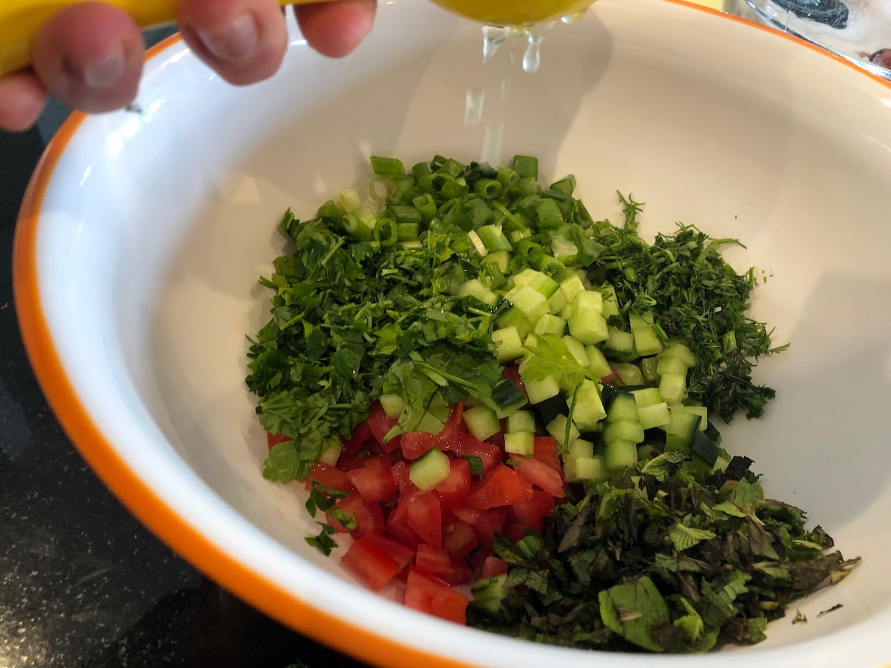 Tabouli usually includes a cooked whole grain called bulgur. In this recipe, I was focused on keeping the recipe “raw” so I used hemp seeds in place of the bulgur. This Hemp Seed Tabouli salad was a chop and drop method. Chop up the ingredients, and drop them into the bowl! Recipe: Hemp Seed Tabouli.
